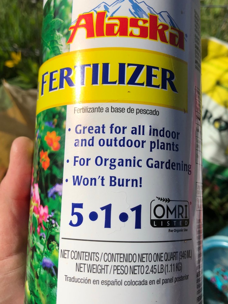 I like to try and stick with organic fertilizers (disclaimer I am not afraid to throw a chemical fertilizer on my plants {not seedlings} if they need a quick boost because they are looking tired and hungry). Initially, I like to start my seedlings with fish emulsions diluted to half strength. I like this because it is mild, organic and I can dilute down easily. It is 5 times higher in nitrogen than phosphorus or potassium. I am trying to encourage green growth initially not necessarily flowering and disease resistance because they are young and protected in a nutrient rich potting soil at this time. I want them to be green and strong.