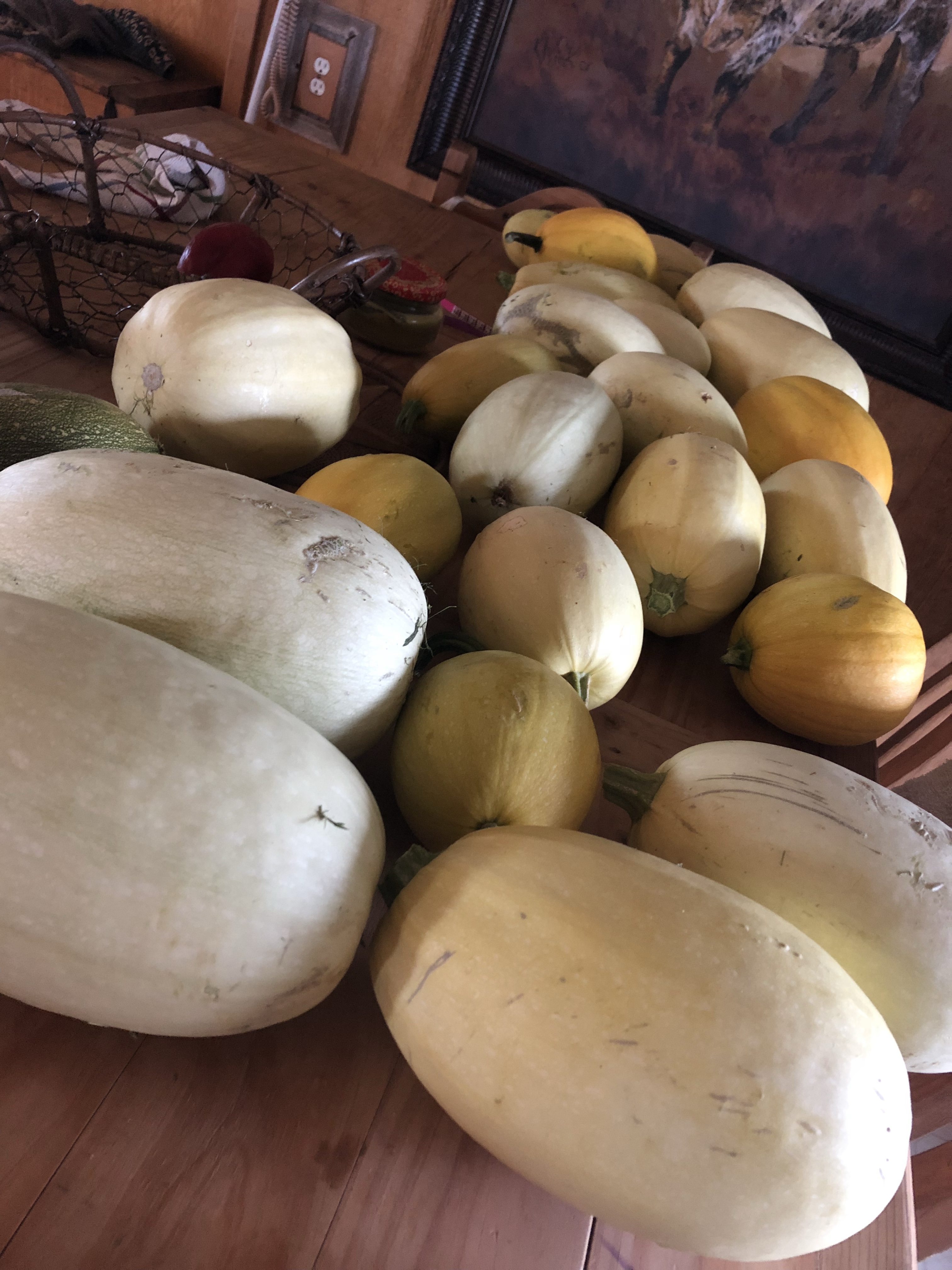 I had big dreams of fresh tomatoes all summer and canning tons of stewed tomatoes that would last me all winter. Mother Nature had something else in mind. Instead of tomatoes all winter we will be having tons of pickles…… and spaghetti squash.
