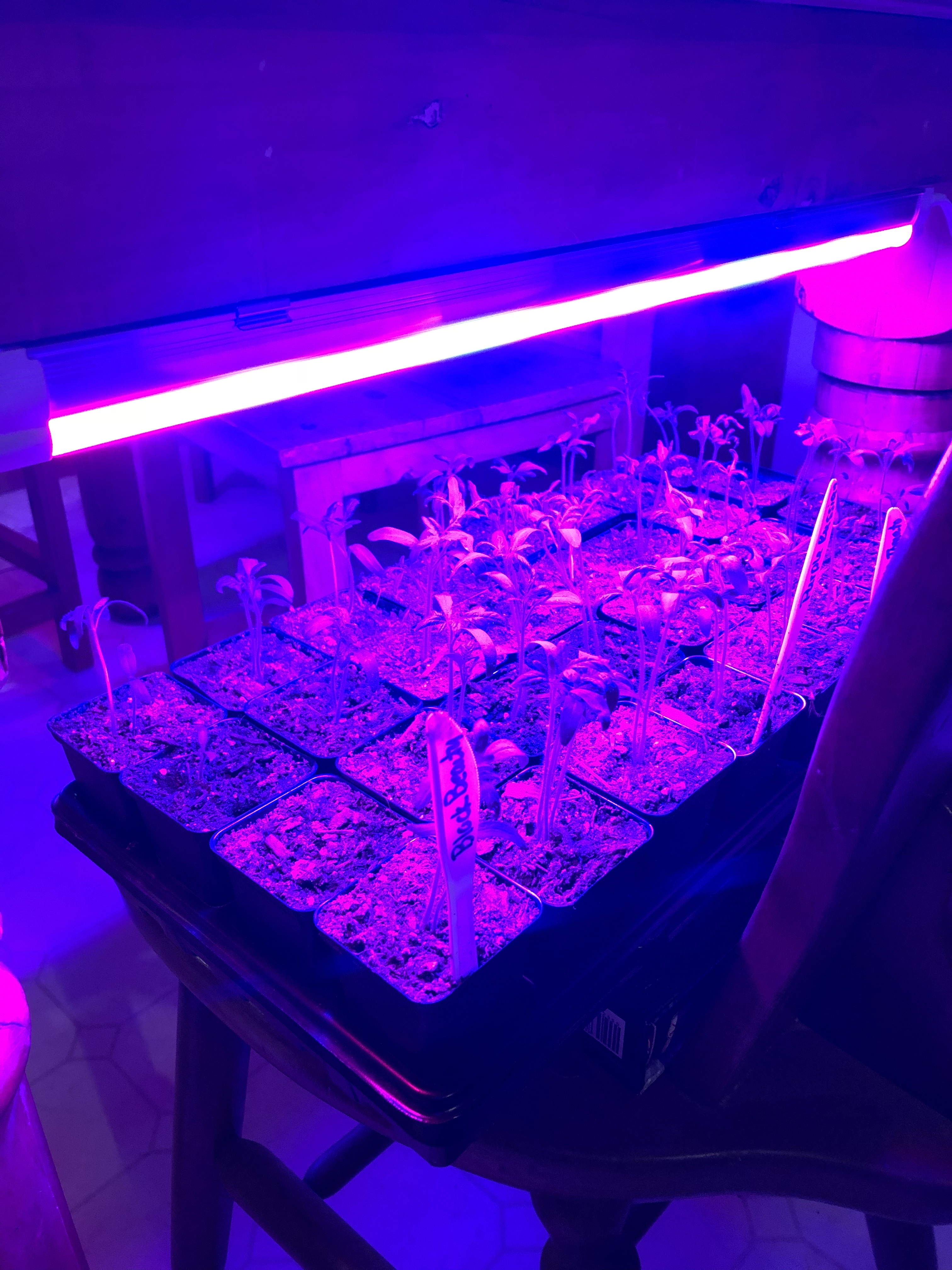 At long last, I am making my way down to the garden in the dark. No flashlight needed I know this path like the back of my hand! My sweet husband goes on to start checking on the animals and fill up feeders. The cats also know when he is there he feeds them special canned food so they encircle him and he can’t go anywhere.