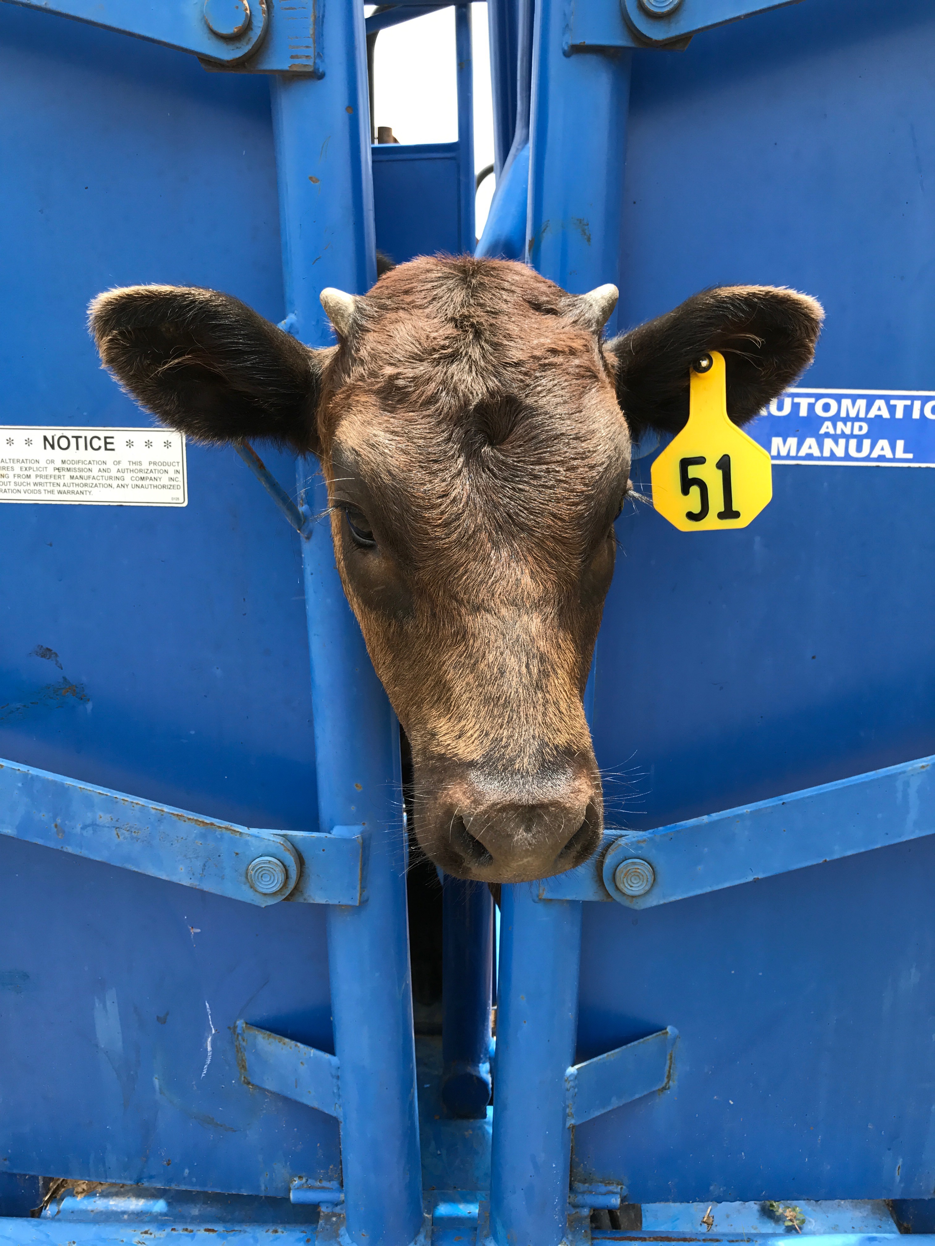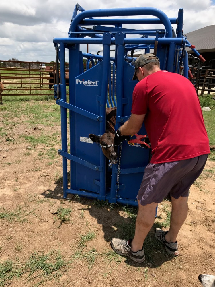 Baby Buttons got her first ear tag today! She was very timid, but she will get used to it soon! This is the first time we’ve used our Priefert shoot on the calves! It worked great!